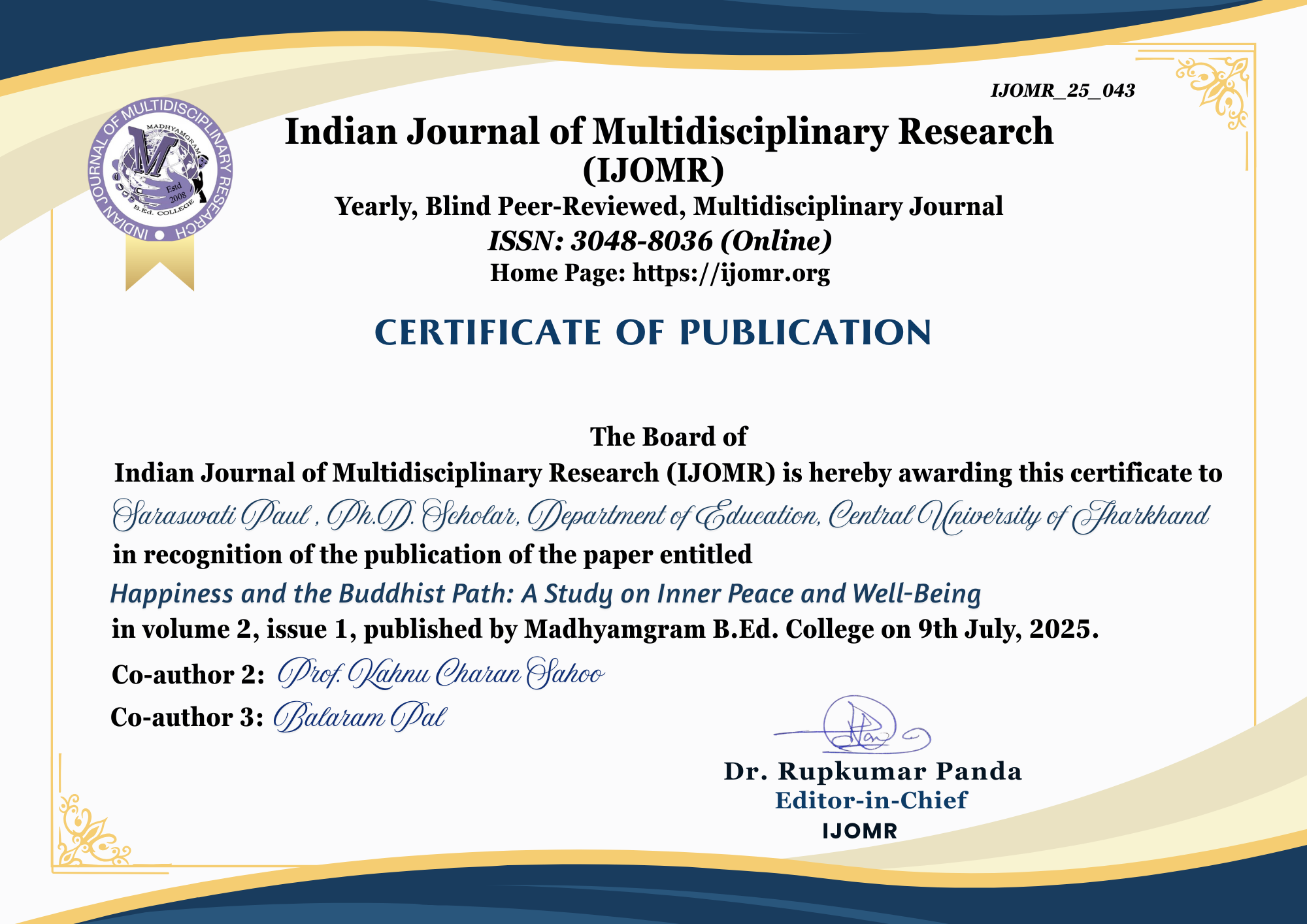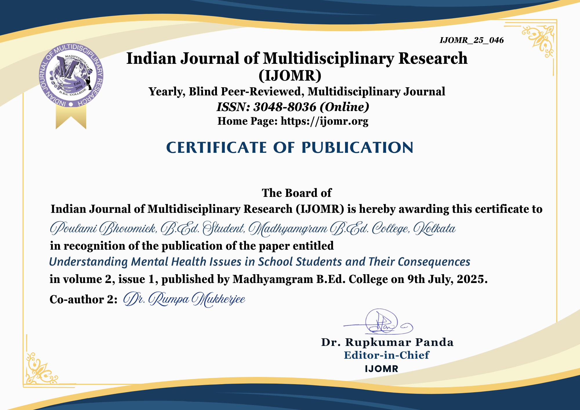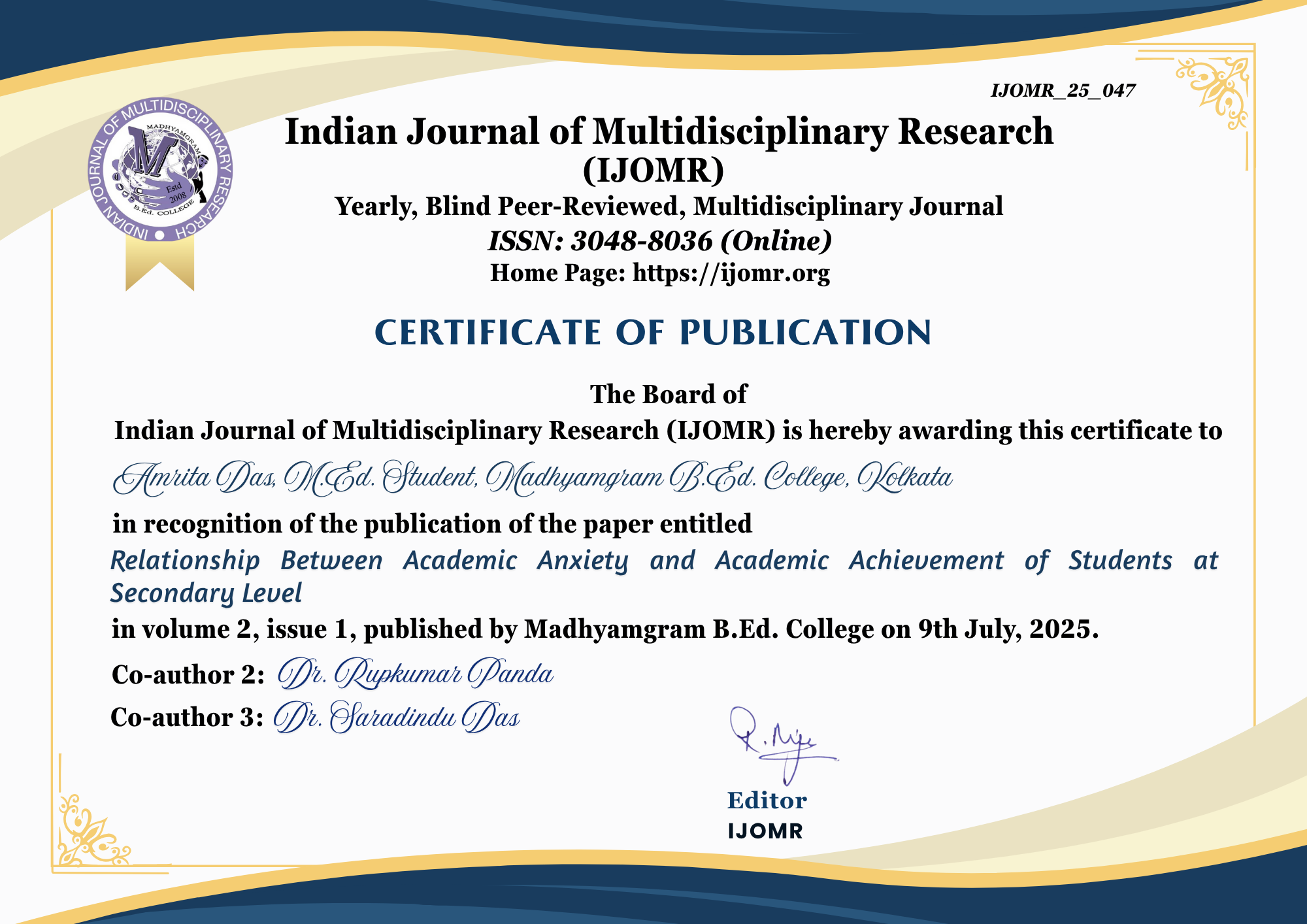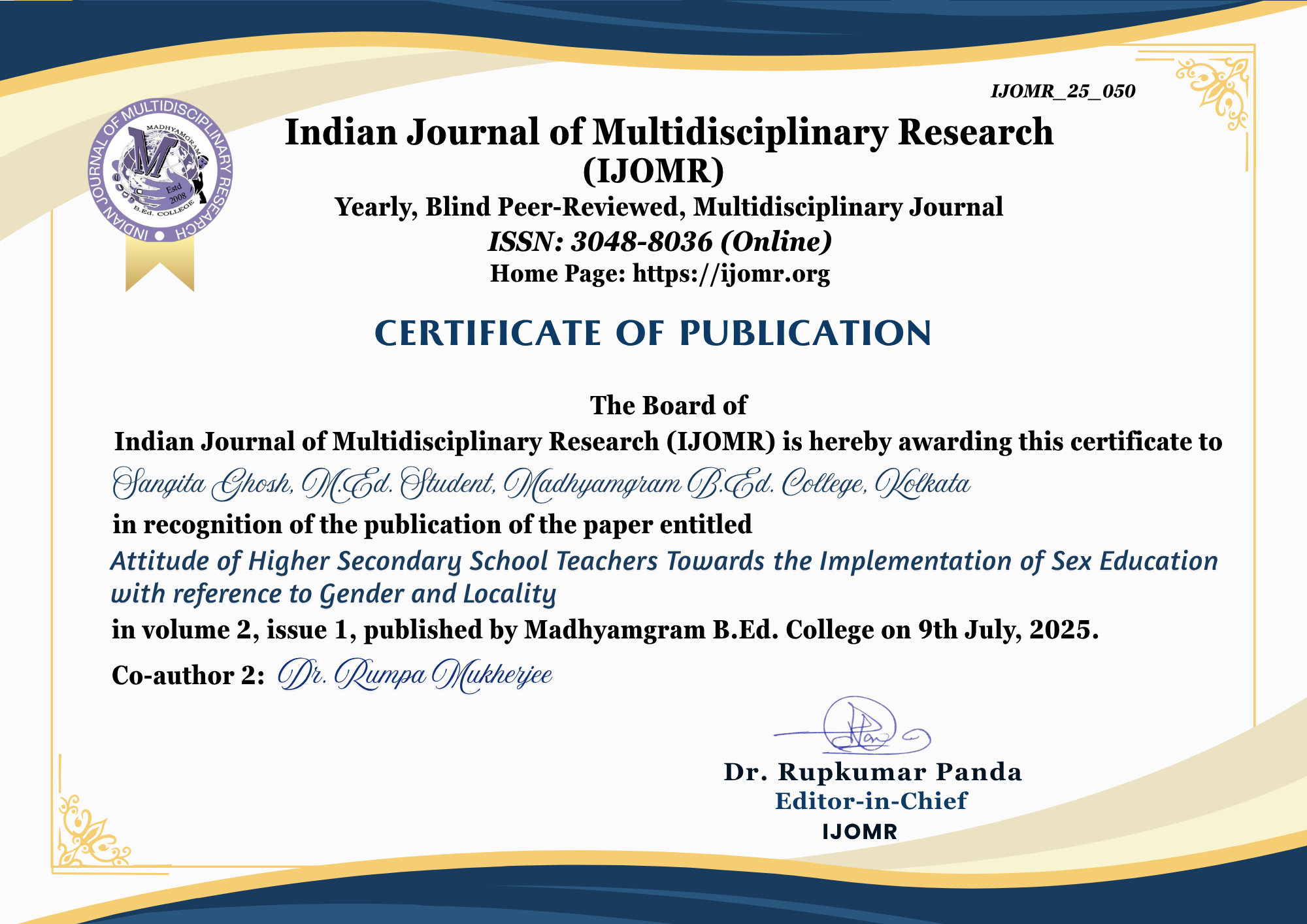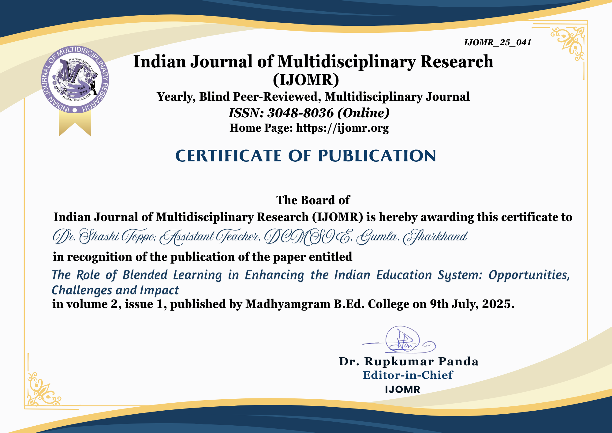 INDIAN JOURNAL OF MULTIDISCIPLINARY RESEARCH (IJOMR)